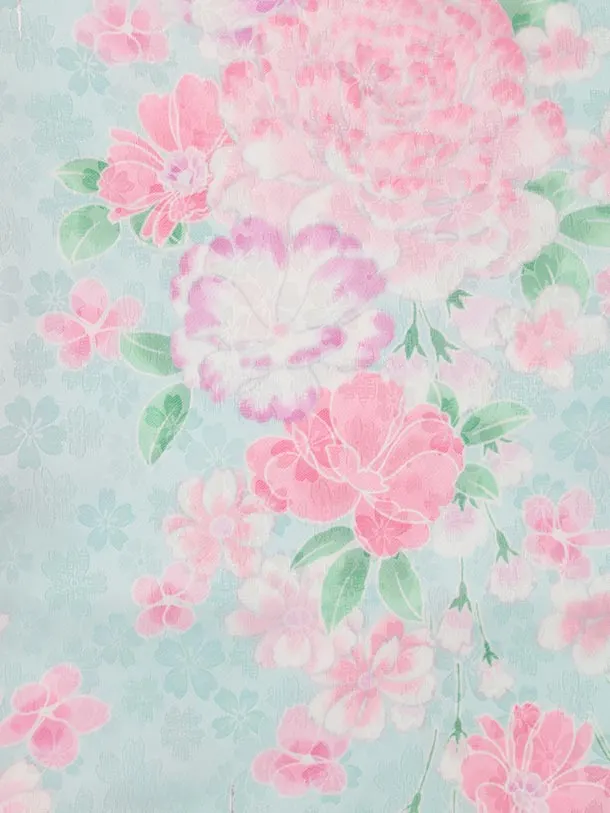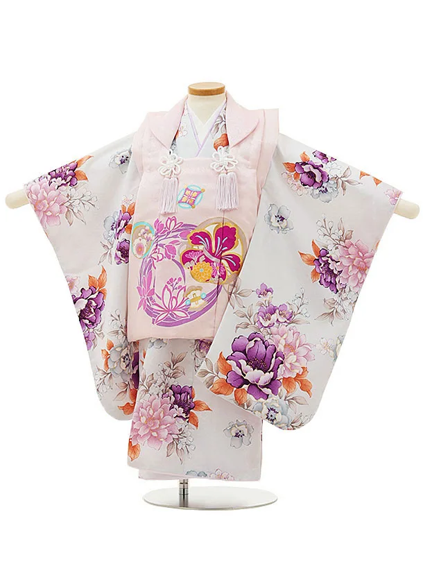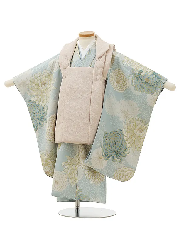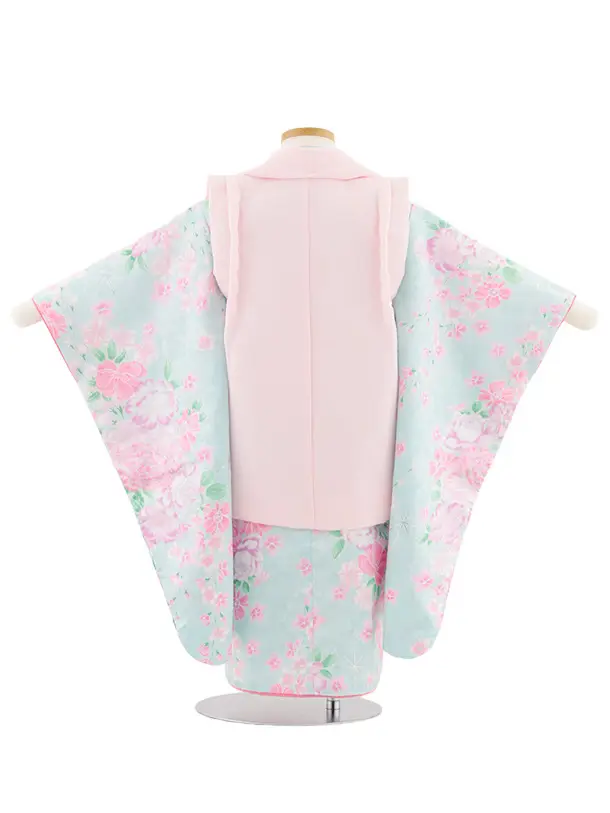 七五三レンタル(3歳女児被布)4920 ピンク刺繍うさぎ×水色 桜地模様
