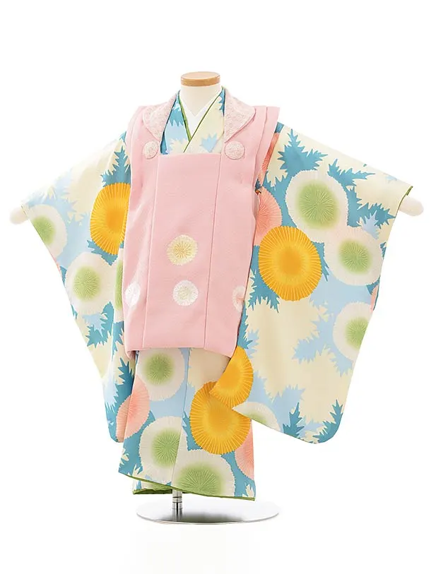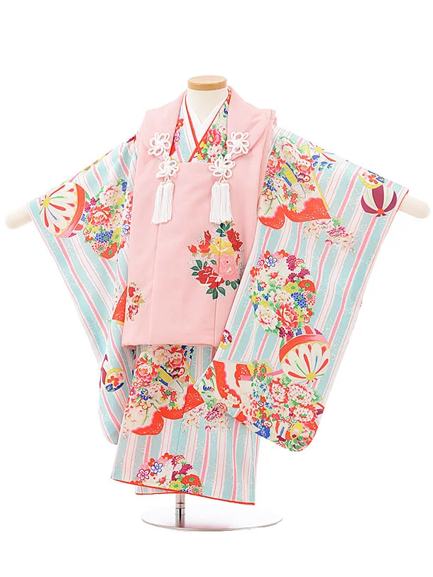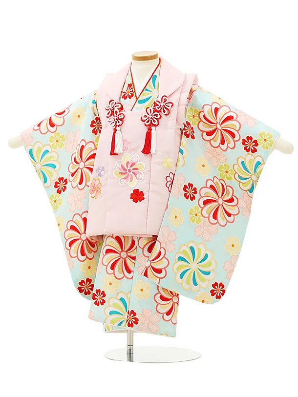 七五三レンタル(3歳女児被布)4928 ピンク×水色菊