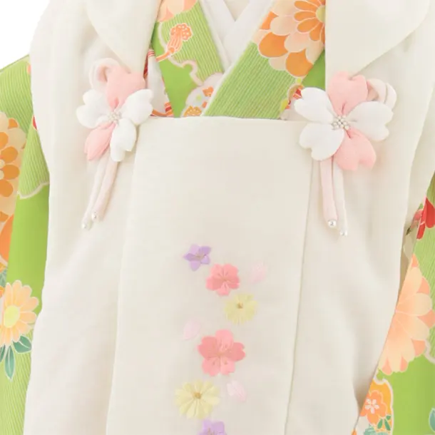 七五三(3歳女児)4932 式部浪漫 オフホワイト刺繍桜×ウグイス地 雪輪に鈴