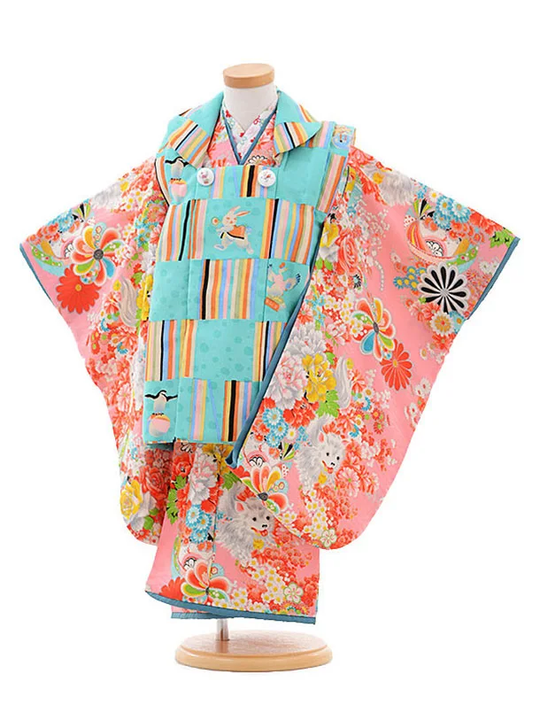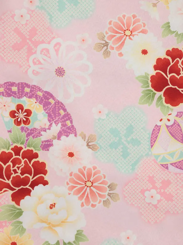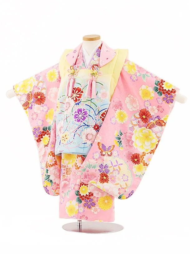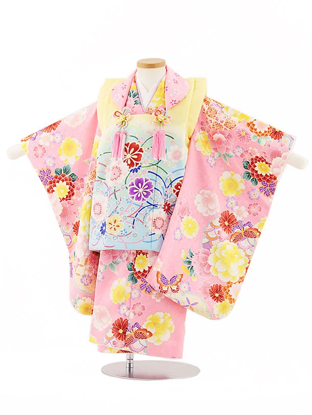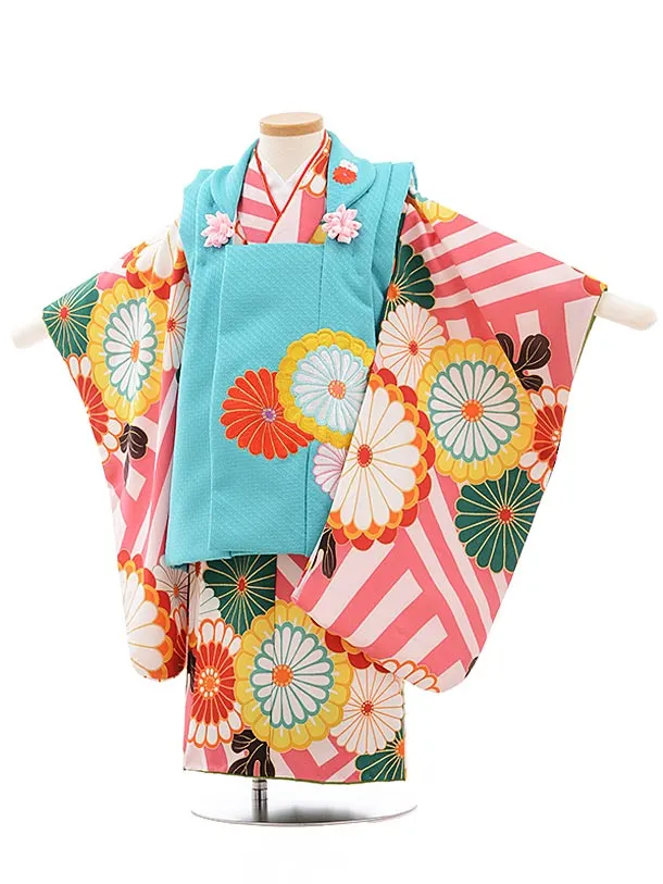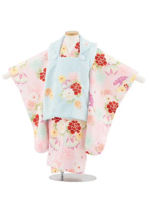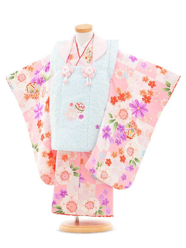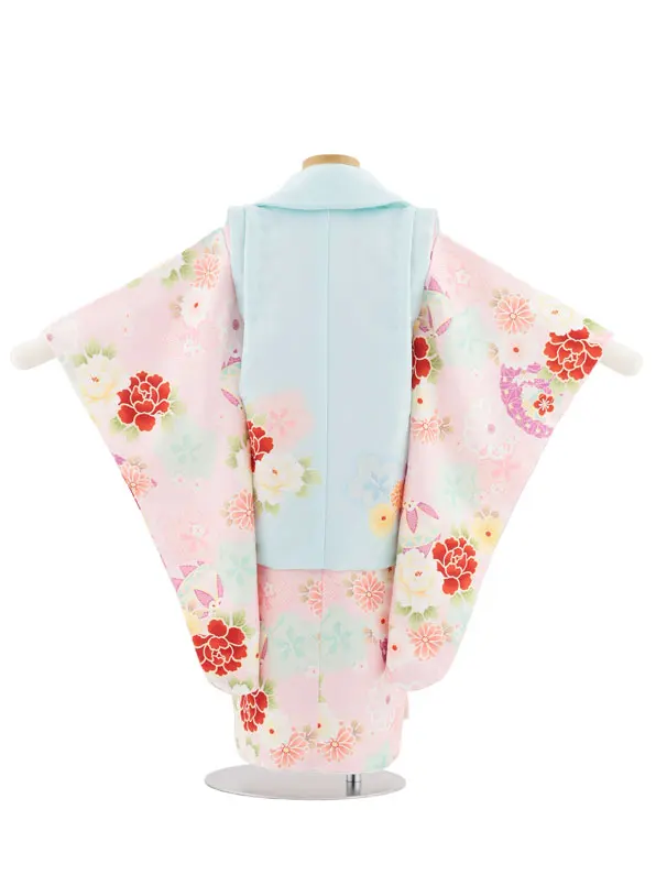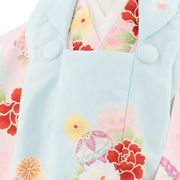 七五三レンタル(3歳女児被布)4945 水色×薄ピンク 鞠と古典花