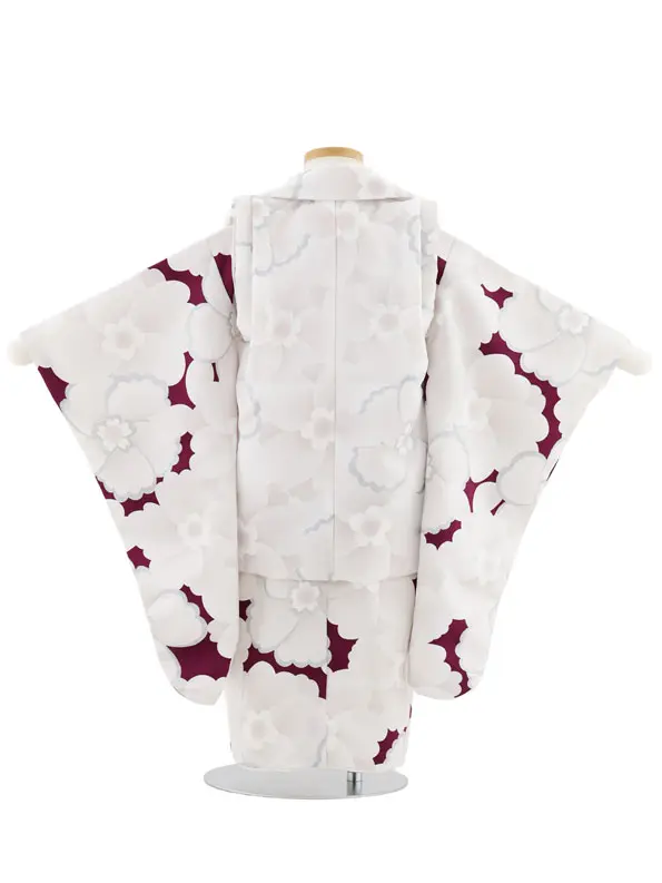 七五三レンタル(3歳女児被布)4951 白×紫 レトロフラワー
