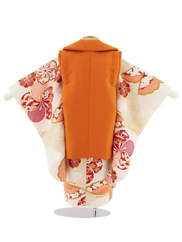 七五三レンタル(3歳女児被布)4958 ぷちぷり オレンジ×ベージュねじり梅