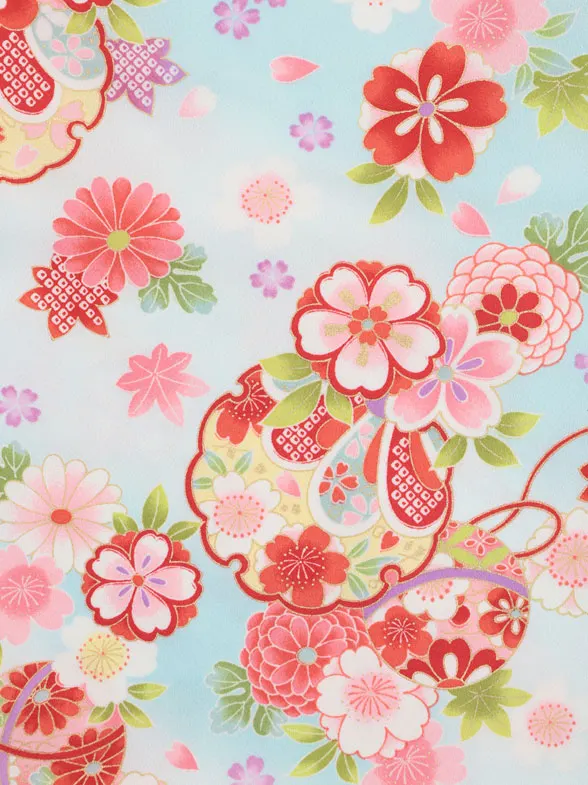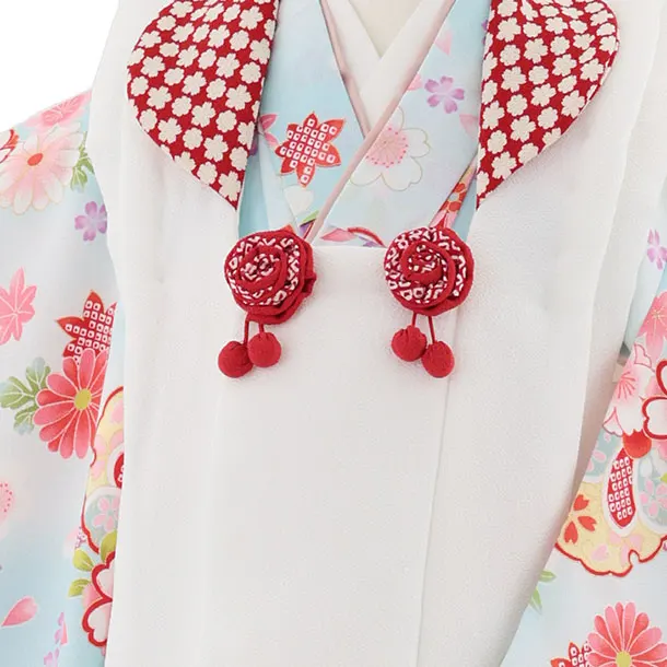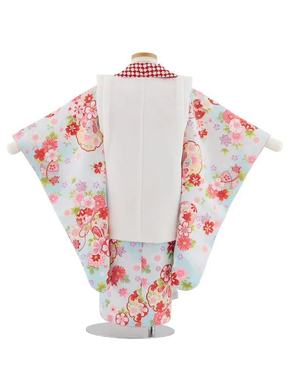 七五三レンタル(3歳女児被布)4964 ホワイト×水色雪輪に桜