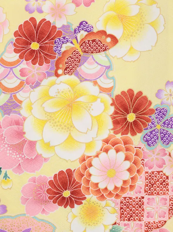 七五三レンタル(3歳女児被布)4971 ピンク梅×黄色 花と蝶