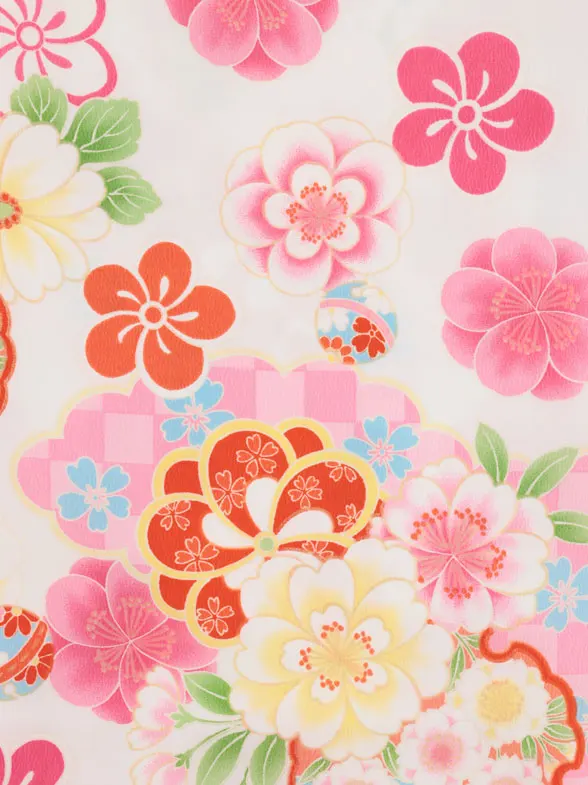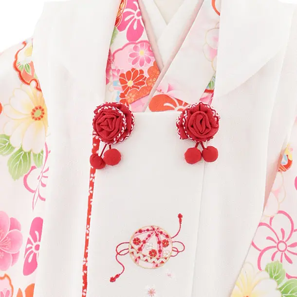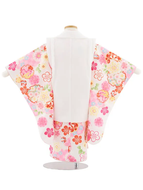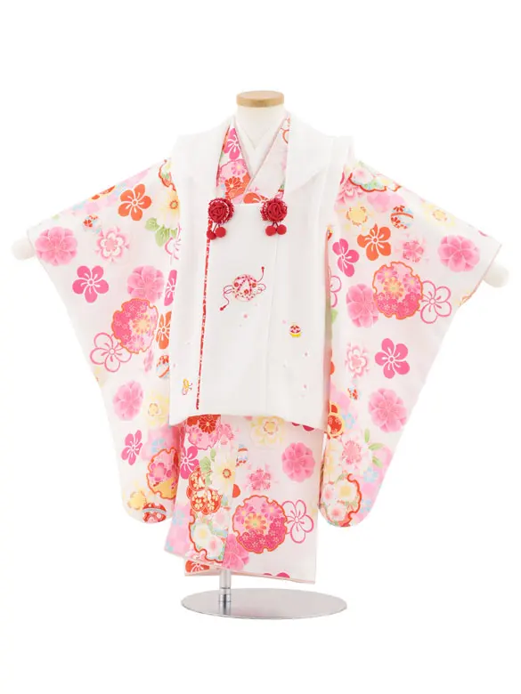 七五三レンタル(3歳女児被布)4976 白刺繍鞠×雪輪にねじり梅