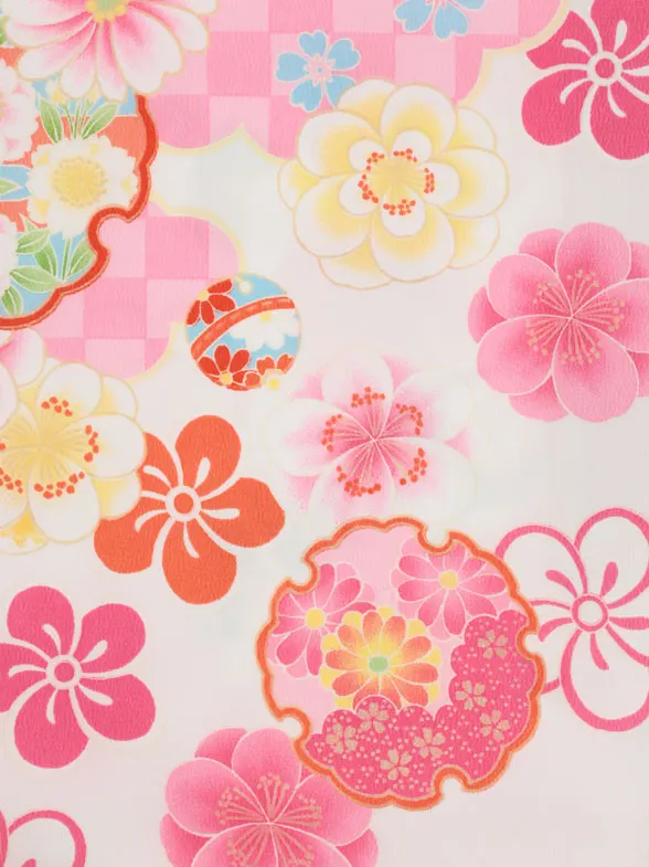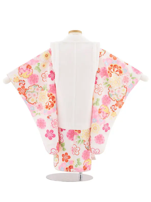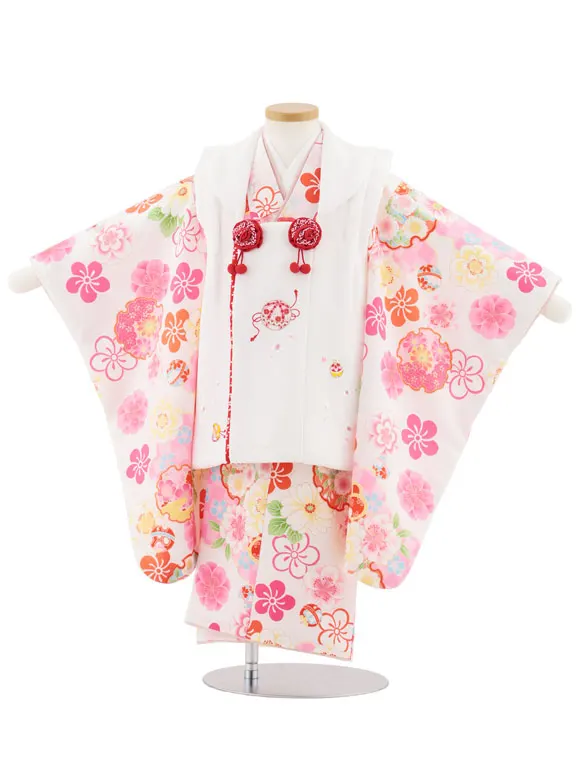 七五三レンタル(3歳女児被布)4979 白刺繍鞠×雪輪にねじり梅