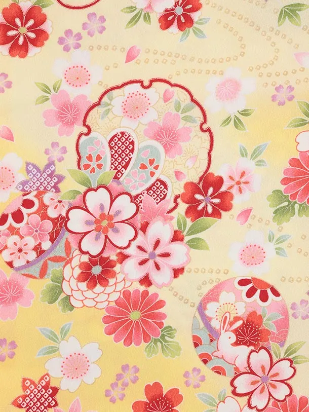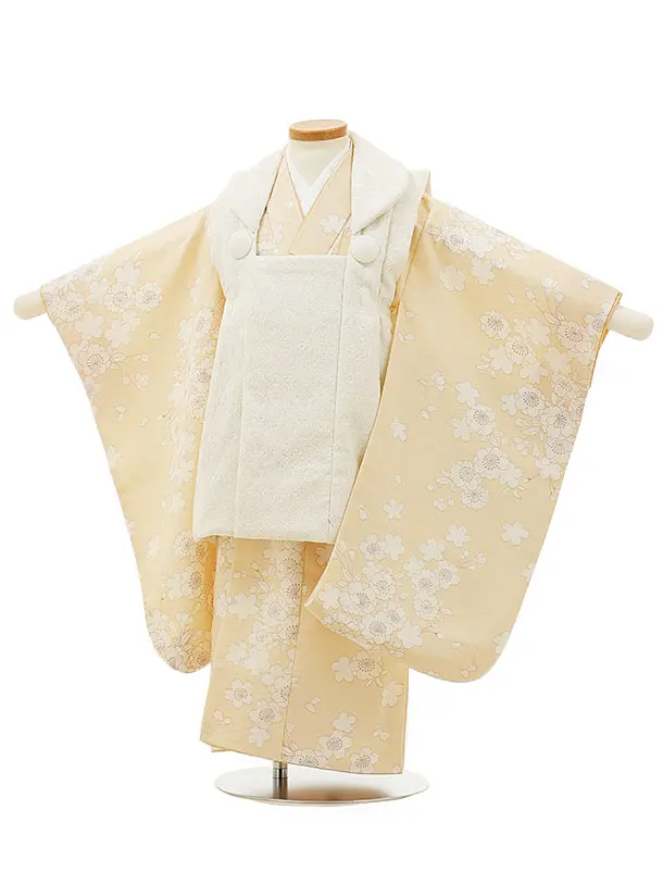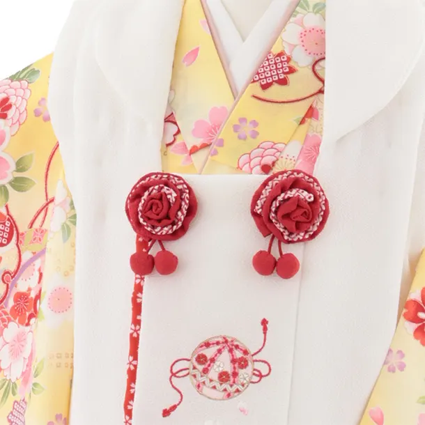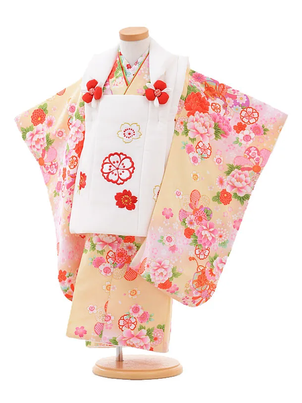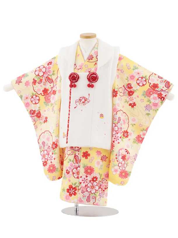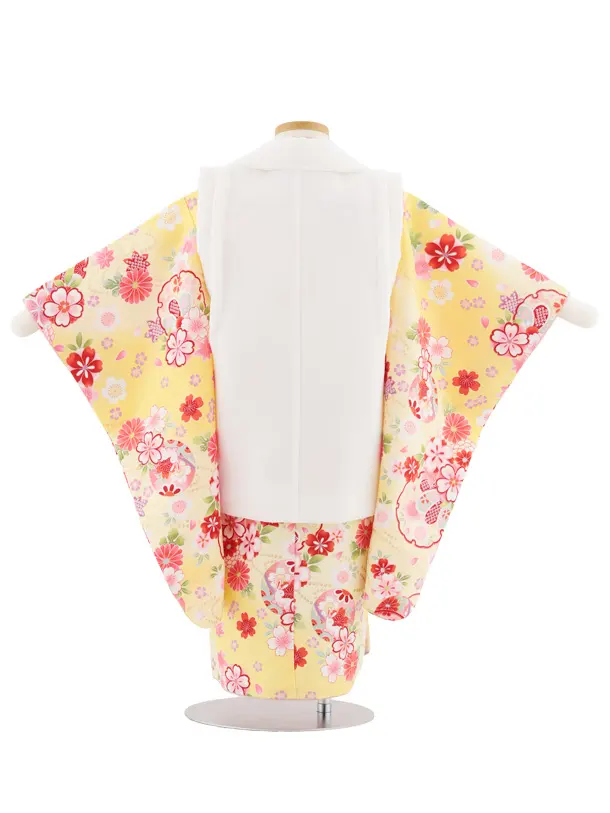 七五三レンタル(3歳女児被布)4982 白刺繍鞠×薄黄ぼかし 雪輪鞠