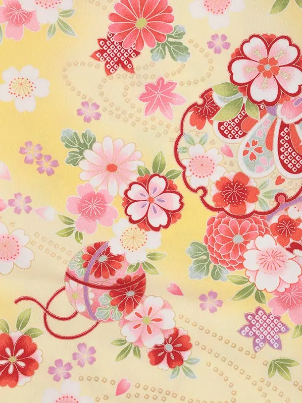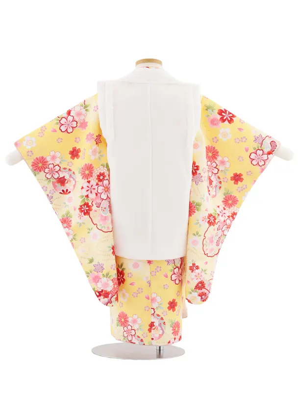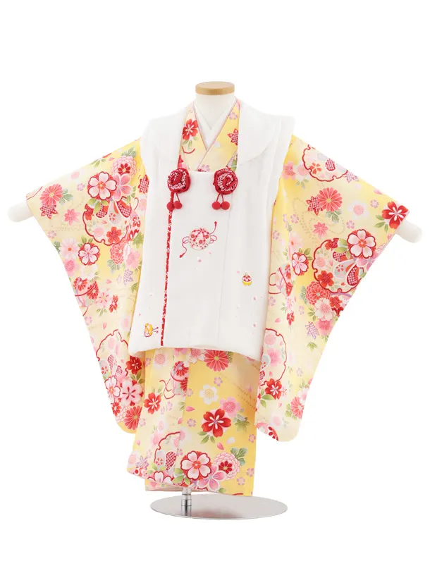 七五三レンタル(3歳女児被布)4986 白刺繍鞠×薄黄ぼかし 雪輪鞠