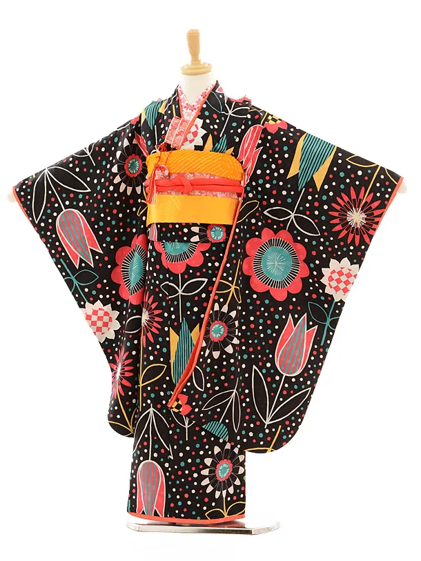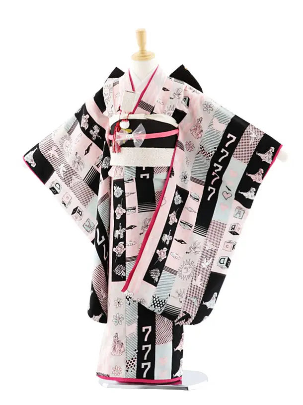 753レンタル(7歳女結び帯)7111 モダンアンテナ 黒