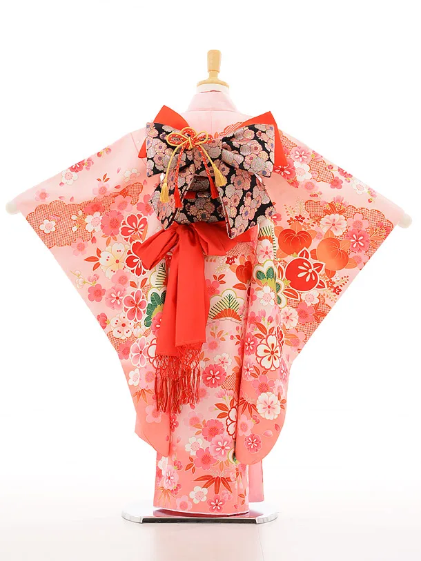 753レンタル(7歳女結び帯)7131 ピンク地花橘