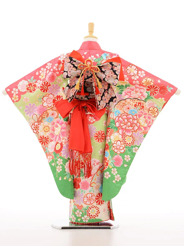 753レンタル(7歳女結び帯)7133 ピンクグリーンラメ