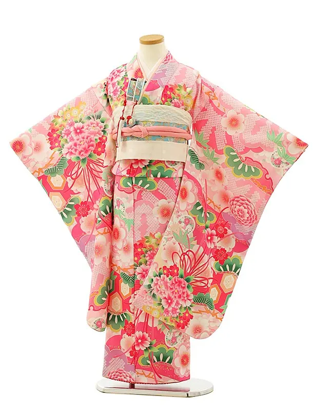 753レンタル(7歳女結び帯)7137 ピンクしぼり