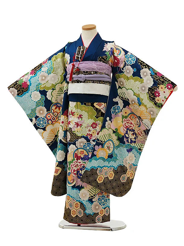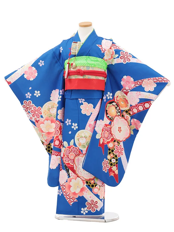 753レンタル(7歳女結び帯)7140 青しぼり柄