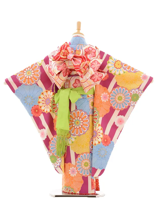 七五三レンタル(7歳女の子結び帯)7176 花わらべ 縞に紋
