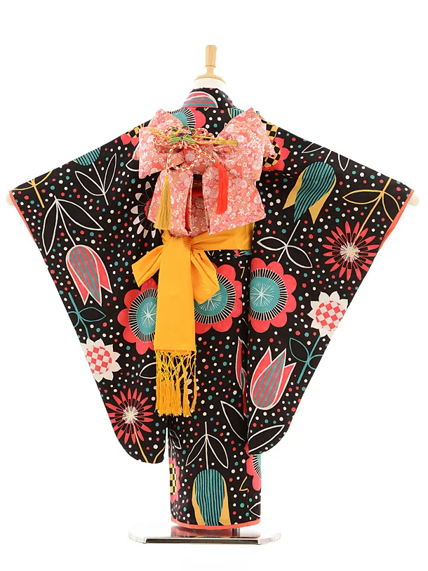 七五三レンタル(7歳女の子結び帯)7195 モダンアンテナ 黒赤