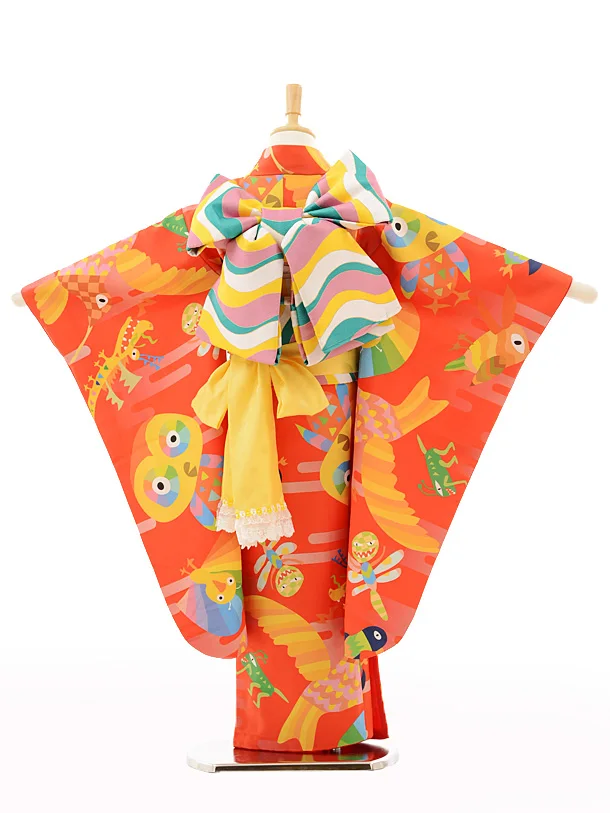 七五三レンタル(7歳女結び帯)7252 HAPPY EARTH 空(赤)