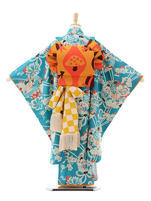七五三レンタル(7才)7280 モダンアンテナ 小紋薬玉 ターコイズ