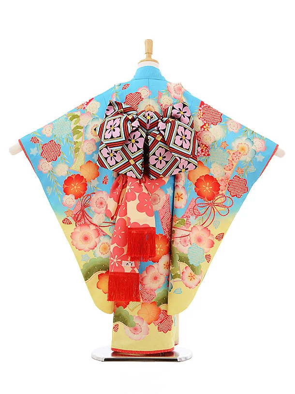 七五三レンタル(7歳女の子結び帯)7313 九重 水色 梅桜