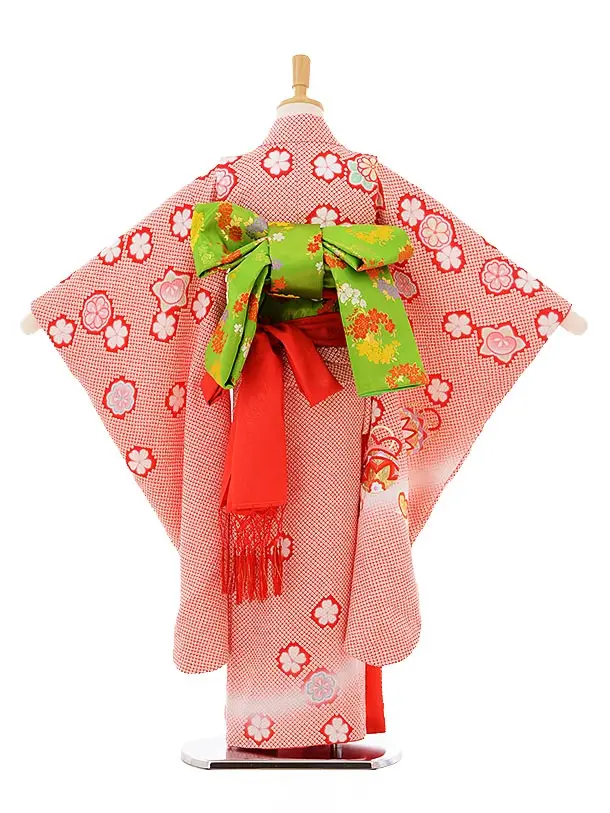 七五三レンタル(7歳女の子袋帯)7324 赤地 絞りにくすだま (正絹)