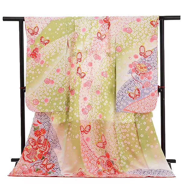 七五三(7歳女児袋帯)正絹7328 滝泰黄緑 おぼろ染 小花模様