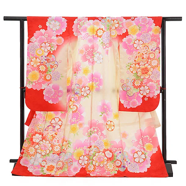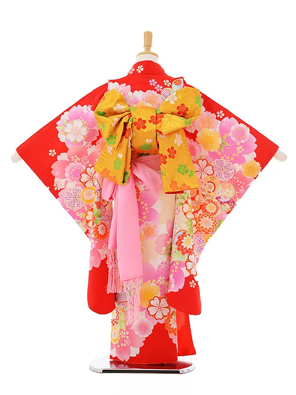 七五三レンタル(7歳女の子袋帯)7331 赤地 花づくし (正絹)