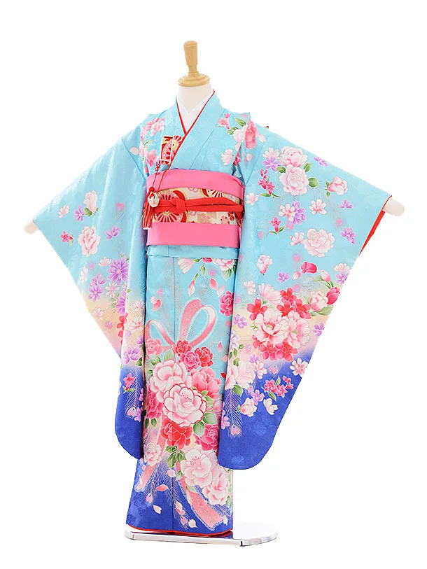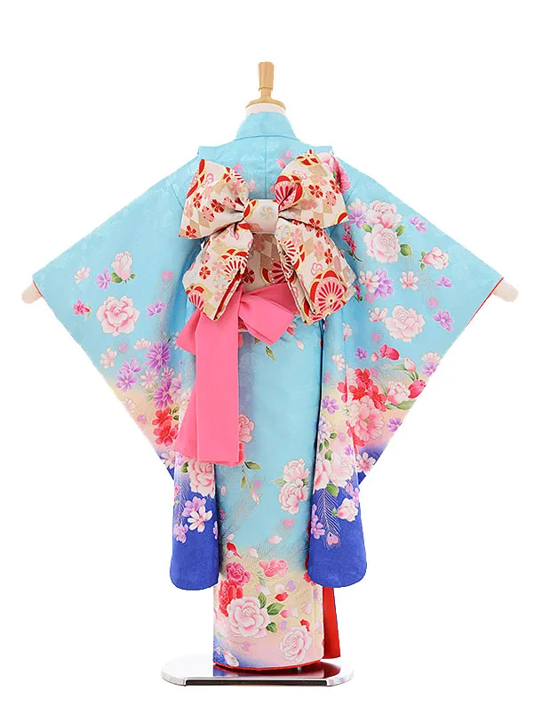 七五三レンタル(7歳女の子結び帯)7345 水色 ぼたんバラ