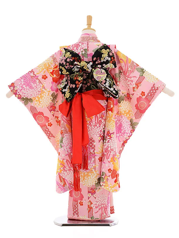 七五三レンタル(7歳女の子結び帯)7375 ピンク地 菊桜