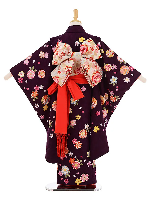 七五三レンタル(7歳女の子結び帯)7382 紫 まり桜