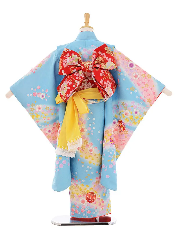 七五三レンタル(7歳女の子結び帯)7391 水色 桜にまり
