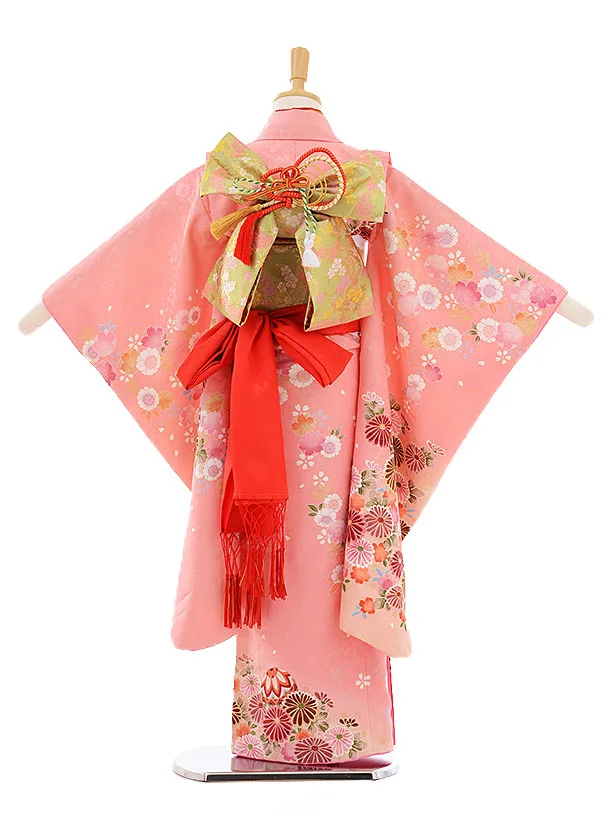 七五三レンタル(7歳女の子結び帯)7392 ピンク地 桜菊