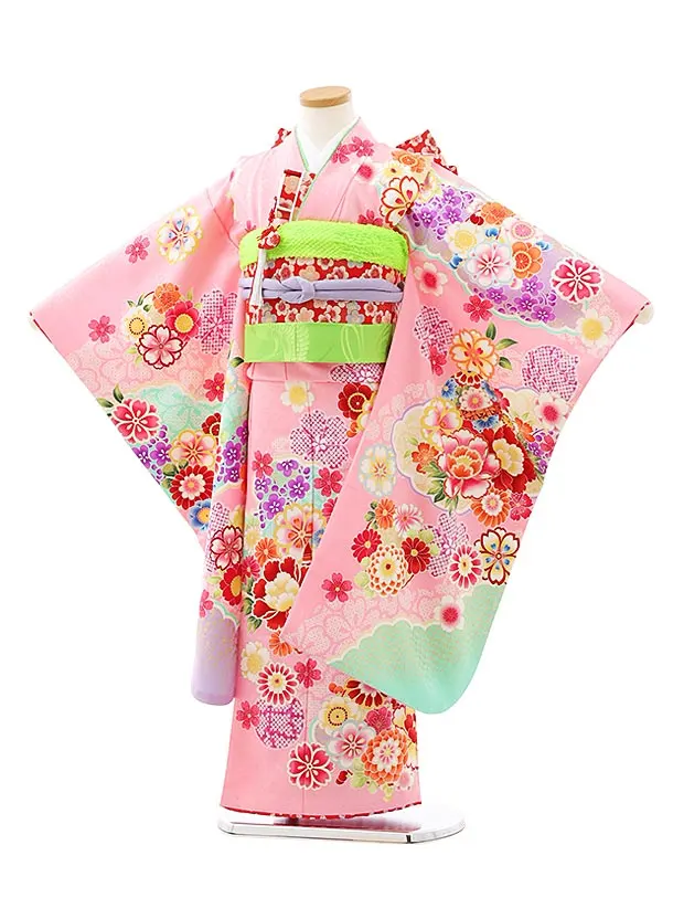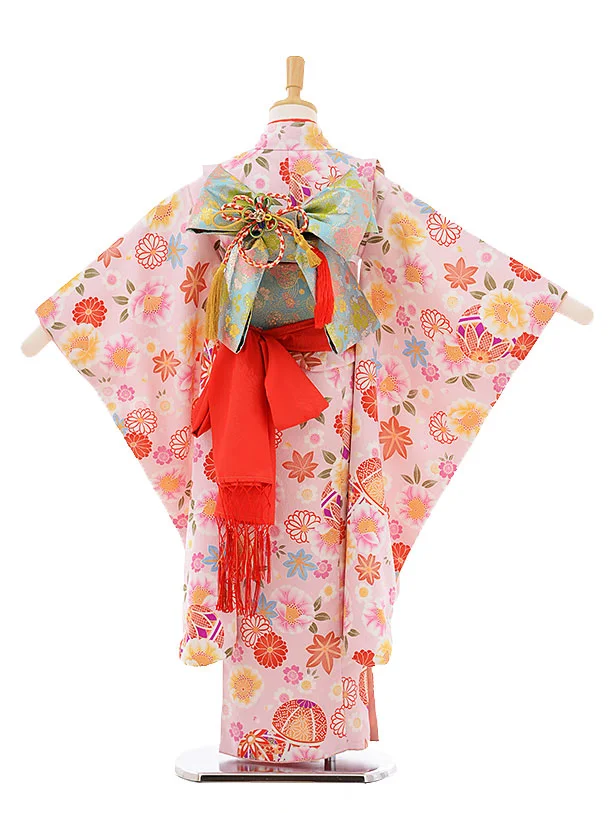 七五三レンタル(7歳女の子結び帯)7397 ピンク地 まり花づくし