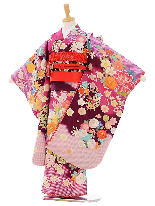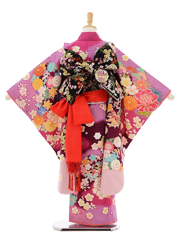 七五三レンタル(7歳女の子結び帯)7413 乙葉 紫地 花づくし