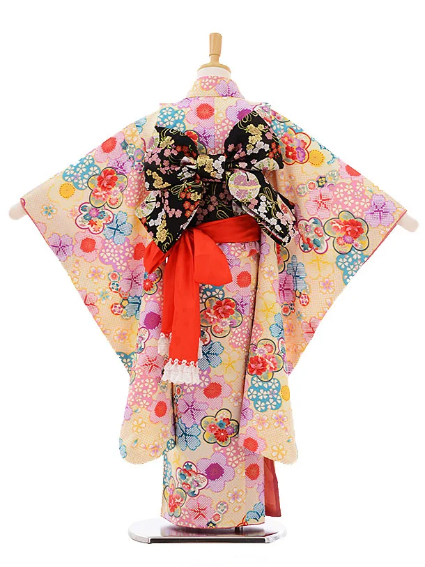 七五三レンタル(7歳女の子結び帯)7467 クリーム地 梅づくし