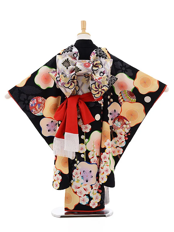 七五三レンタル(7歳女の子結び帯)7489 UNSODO 黒 梅