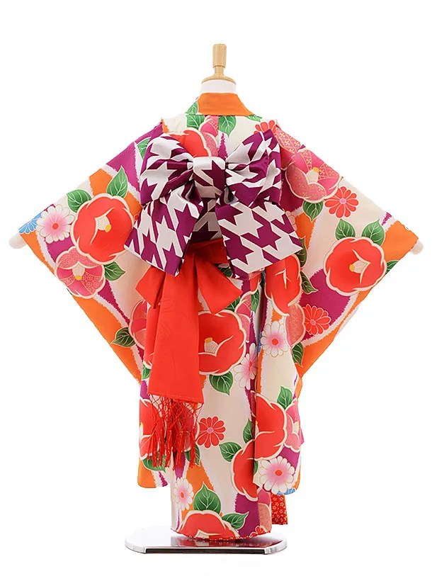 七五三レンタル(7歳女の子結び帯)7510花わらべ パープル×オレンシジ椿