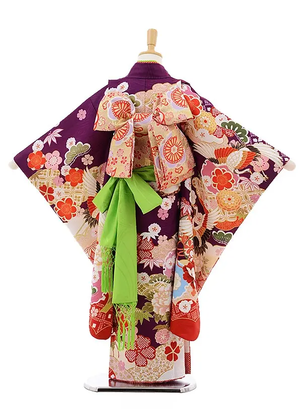 七五三レンタル(7歳女の子結び帯)7519 式部浪漫 パープル地 鶴ぼたん
