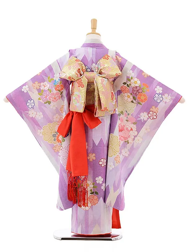 七五三レンタル(7歳女の子結び帯)7537 KAGURA パープル 矢柄 花