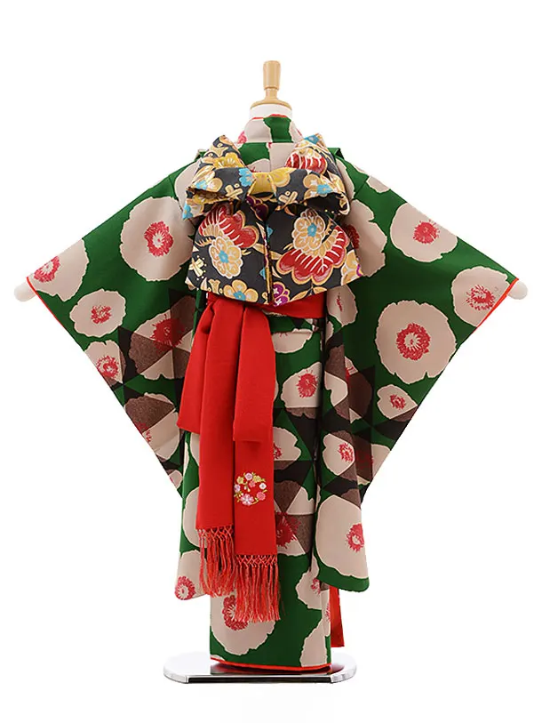 七五三(7歳女結び帯)7544 LILLI グリーン地 ポピー