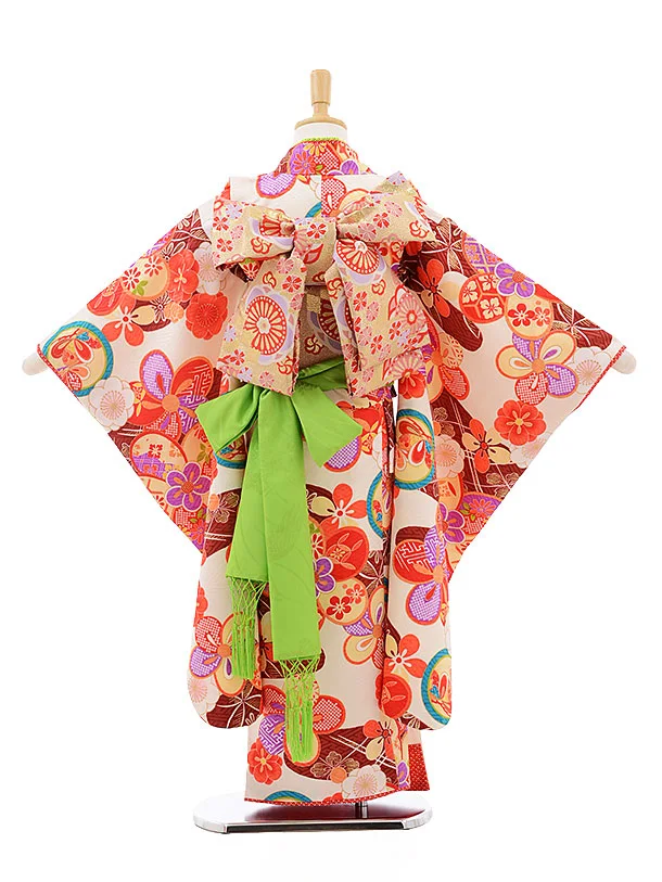 七五三レンタル(7歳女の子結び帯)7558 式部浪漫 白地 ねじり梅