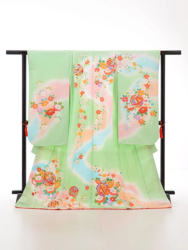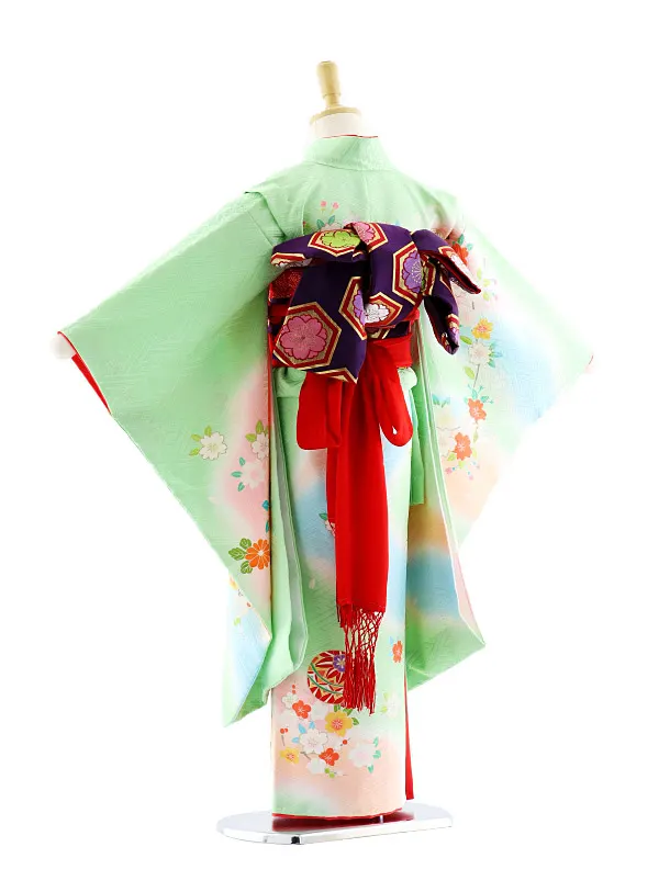 七五三レンタル(7歳女袋帯)7626 正絹 パステルグリーン 桜まり