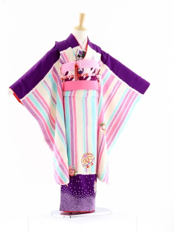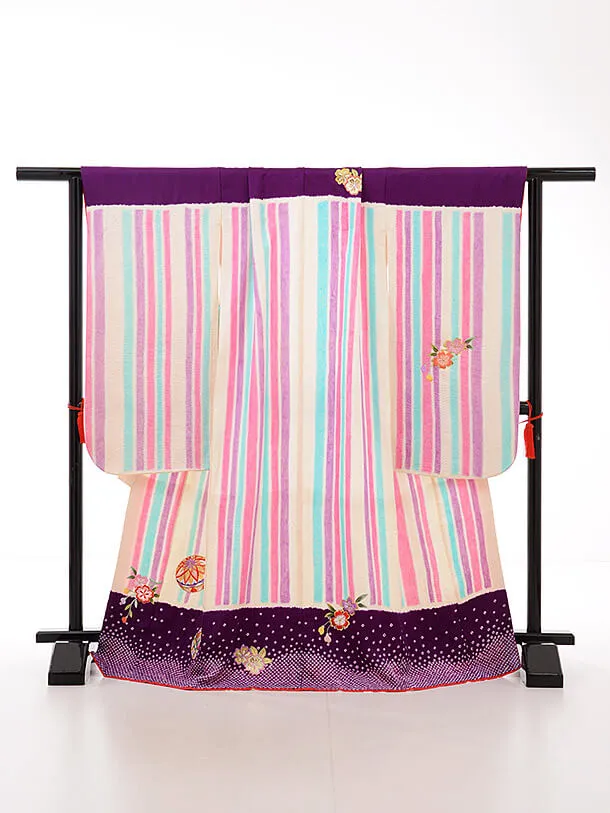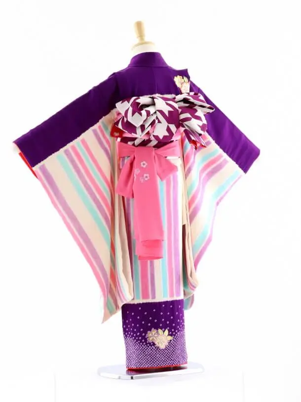 七五三レンタル(7歳女袋帯)7627 正絹 紫地 ストライプまり