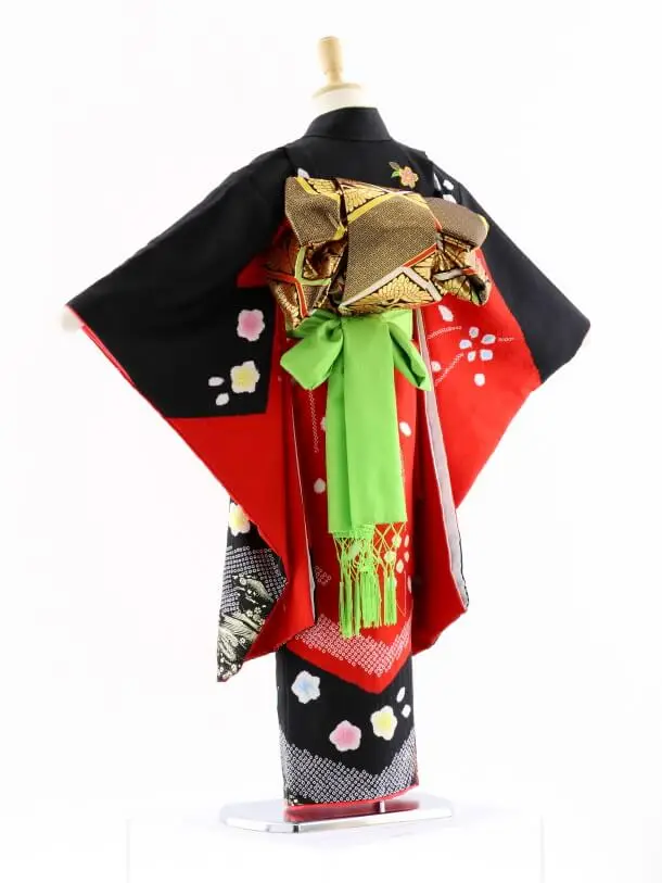七五三レンタル(7歳女袋帯)7632 正絹 黒赤 鈴まり 刺繍