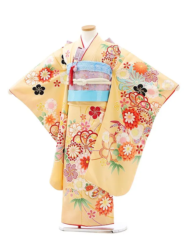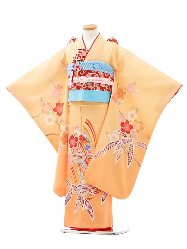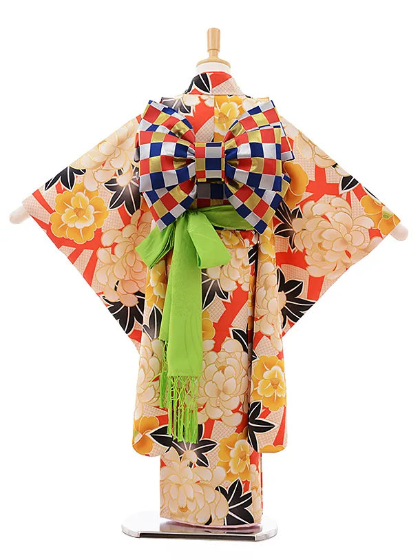 七五三(7歳女児結び帯)7668 オレンジ地 ぼたん