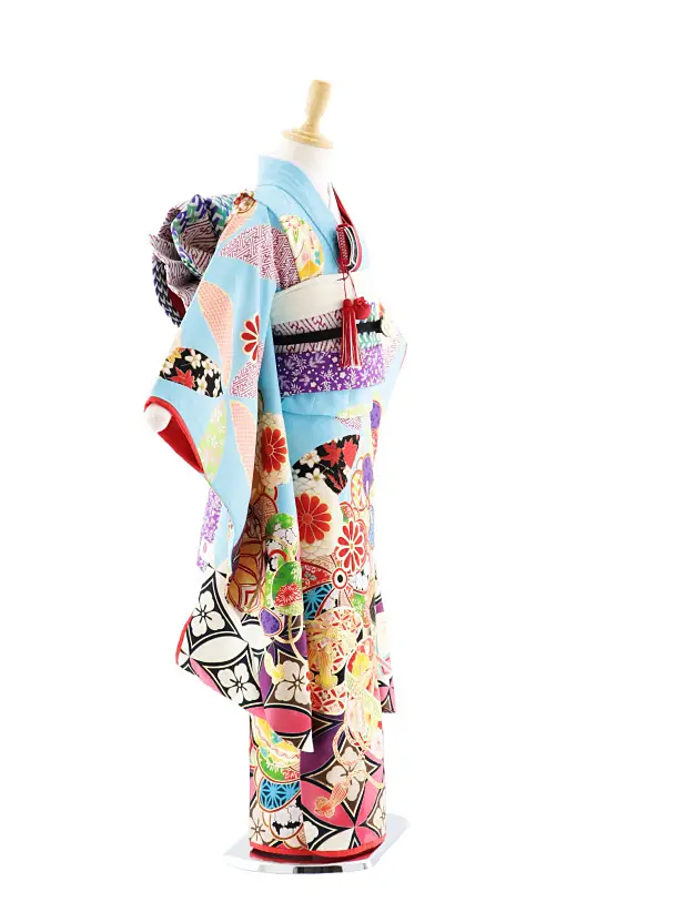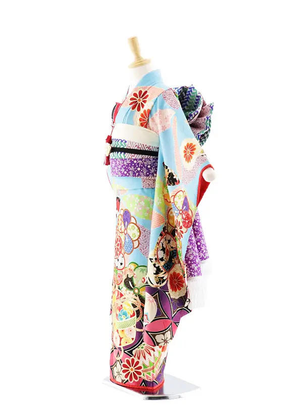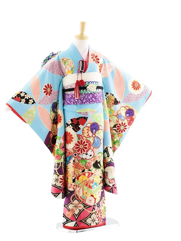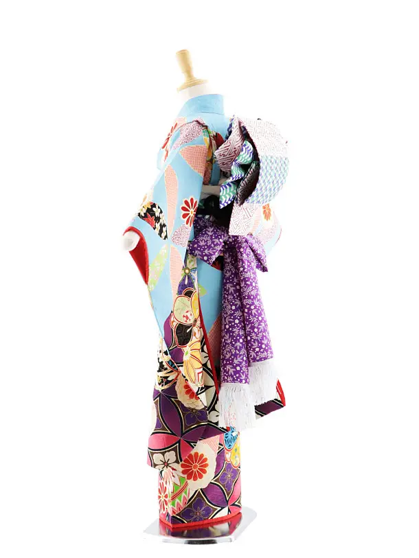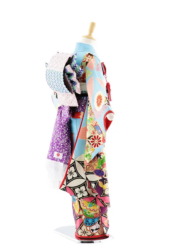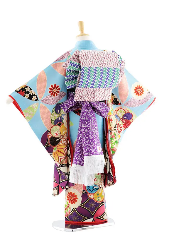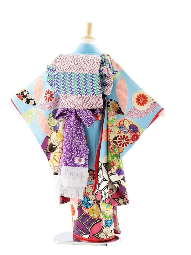 七五三(7歳女児結び帯)7701 HAIBARA 七宝に文箱 水色