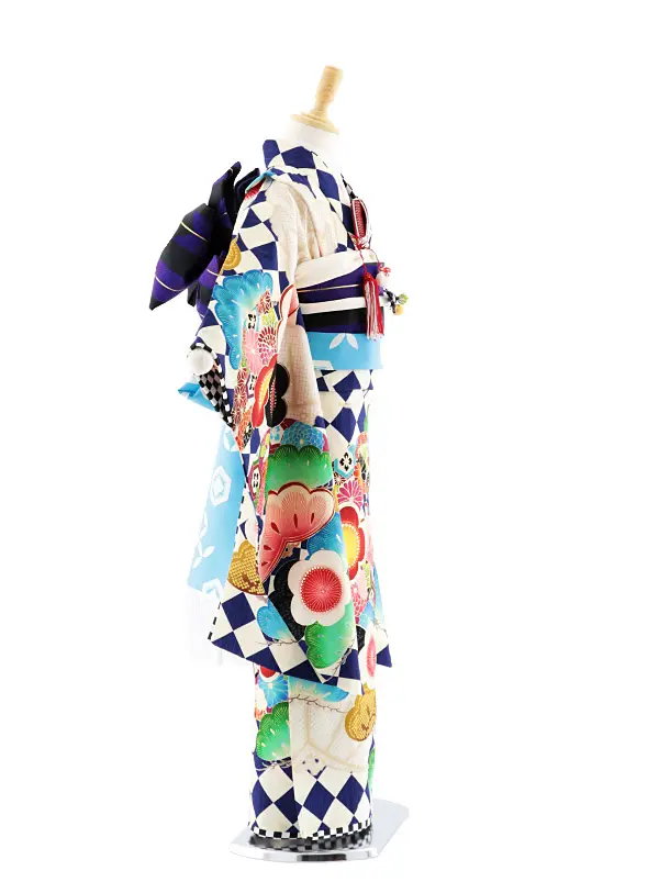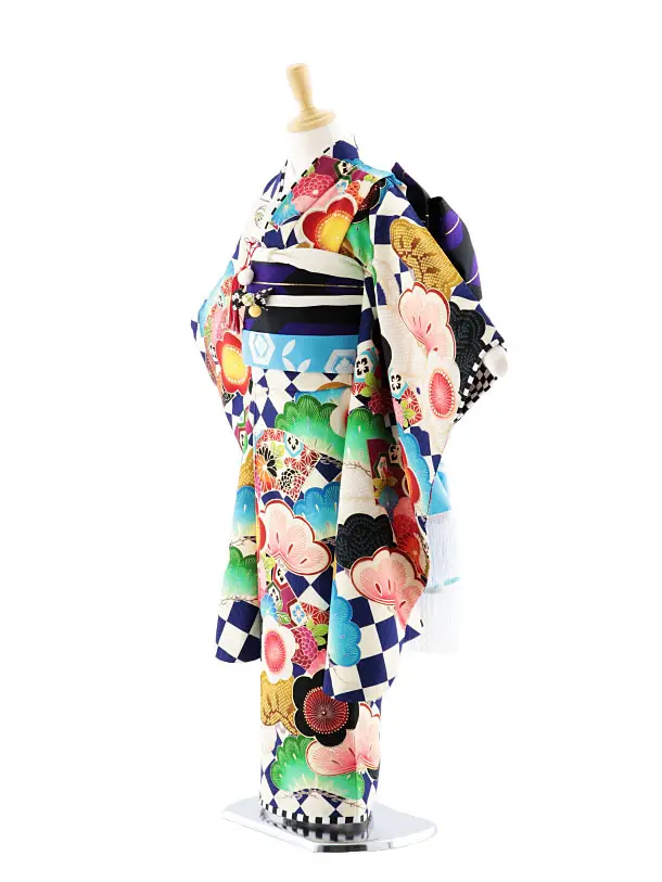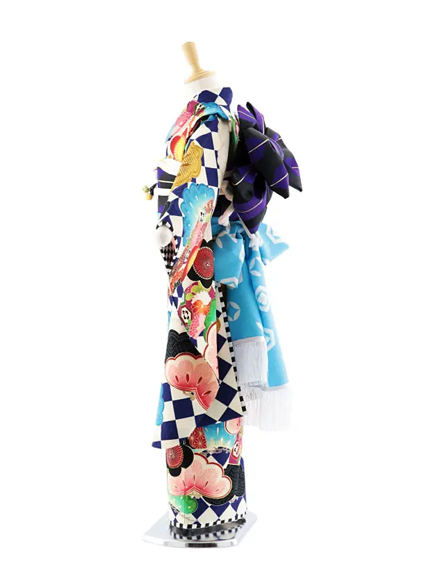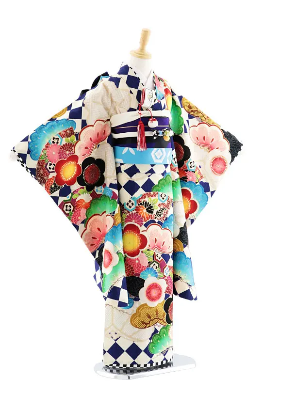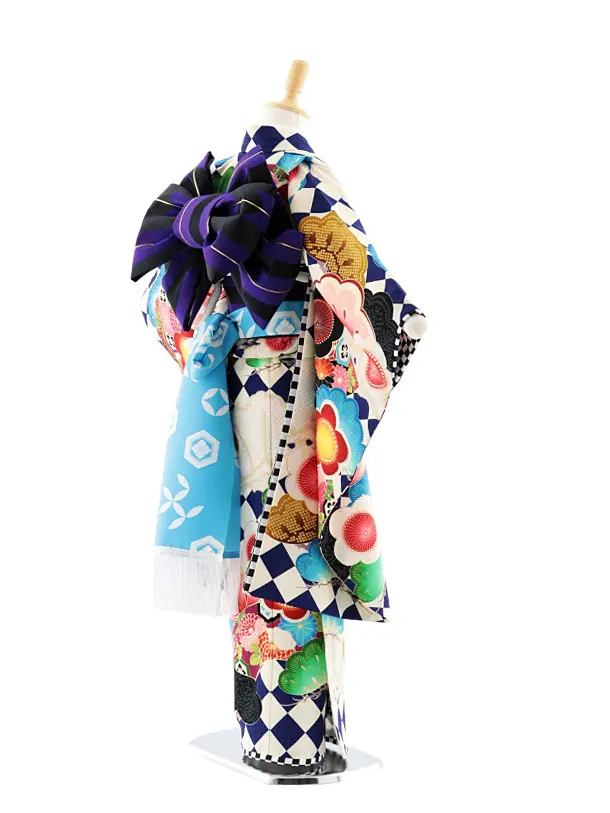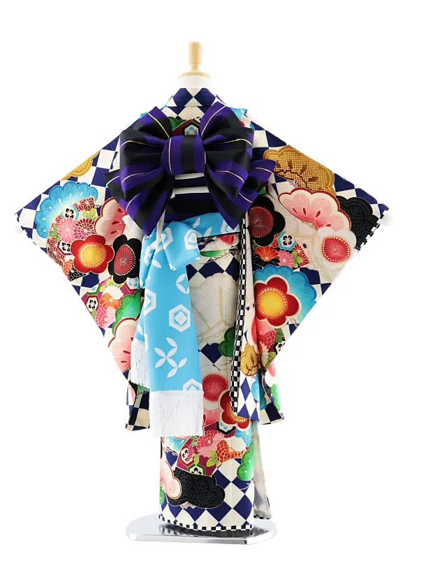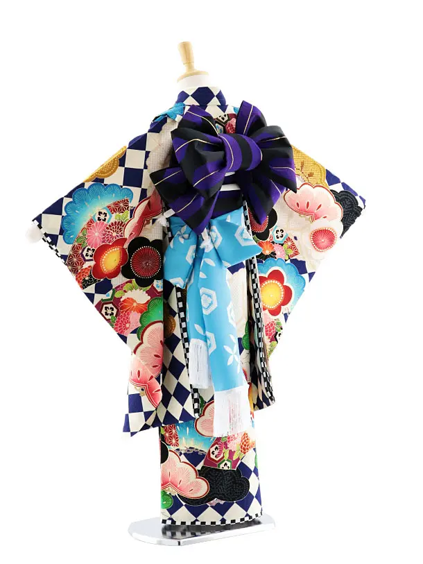 七五三(7歳女児結び帯)7704 JAPANSTYLE ダイヤに扇松梅 紺