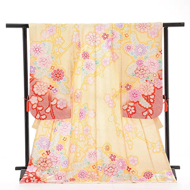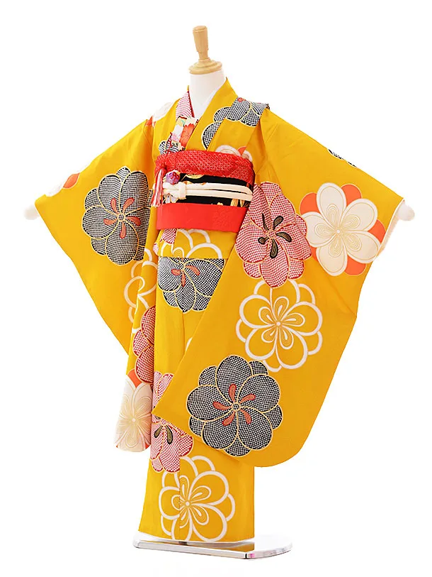 七五三レンタル(7歳女児袋帯) 高級正絹 7723 黄色地 菱田柄 花まり
