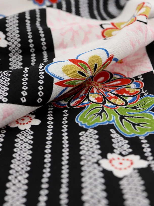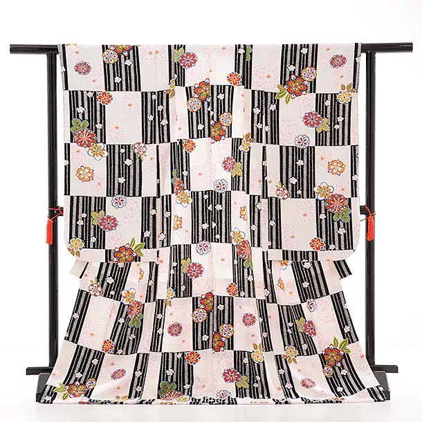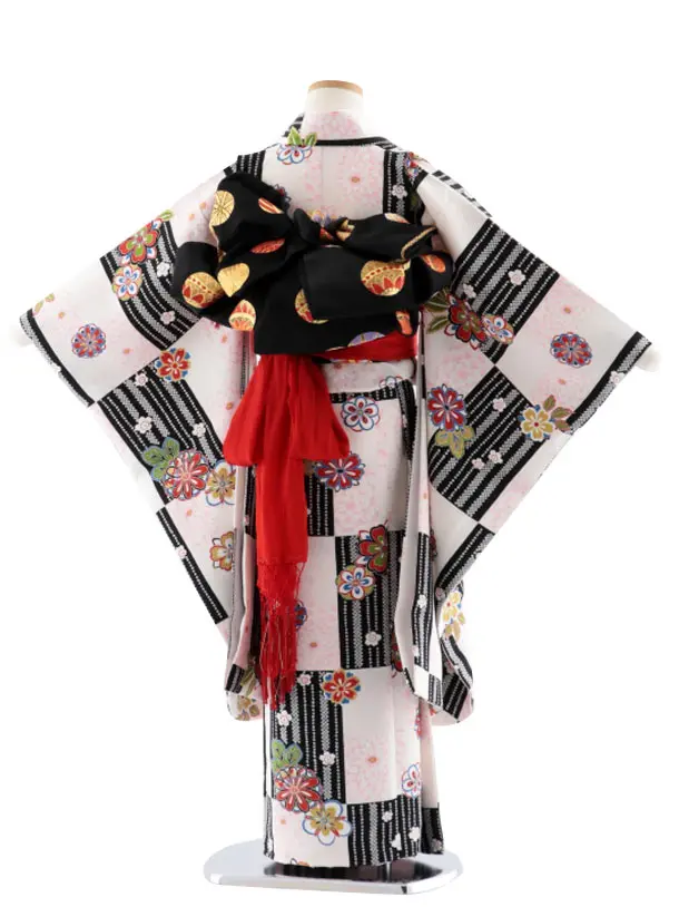 七五三レンタル(7歳女児袋帯) 正絹 7729 黒地 小紋 格子に桜