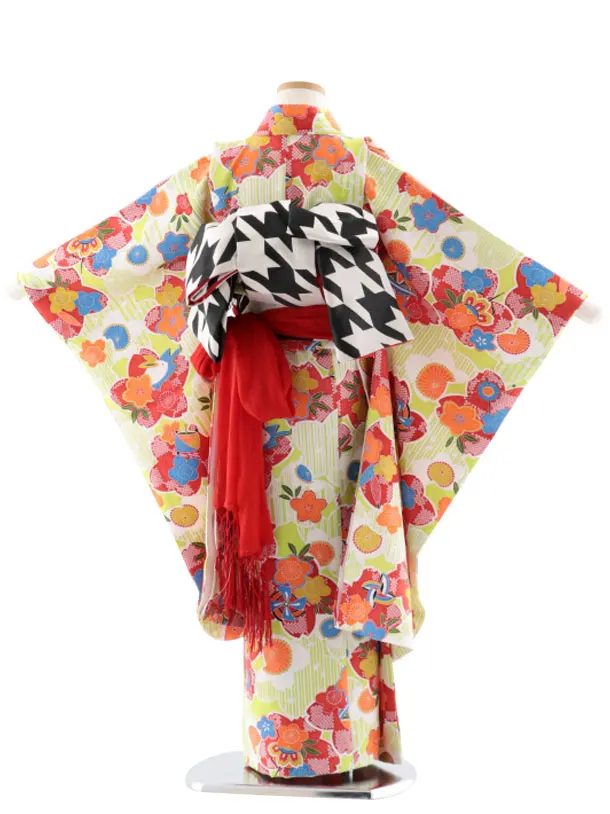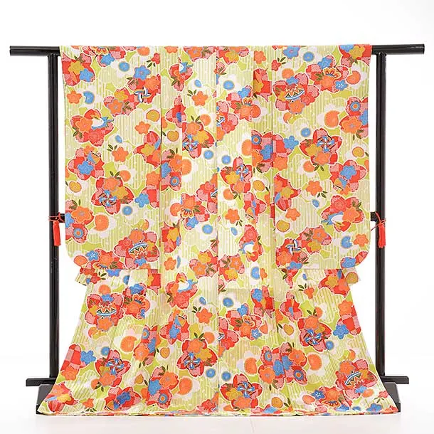 七五三レンタル(7歳女児袋帯) 正絹 7734 きみどり地 小紋 桜