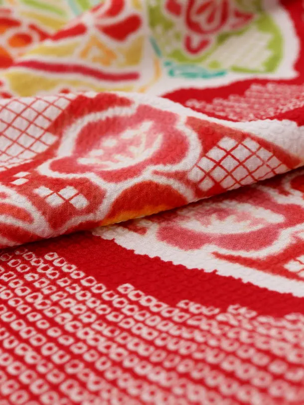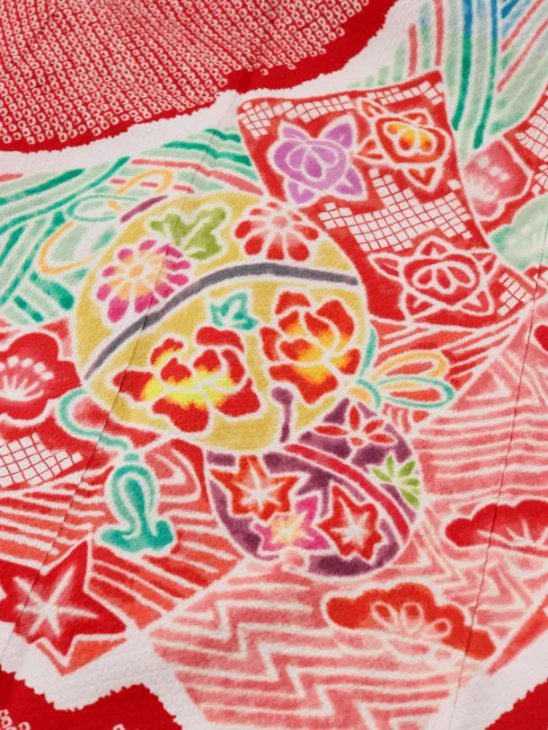 七五三レンタル(7歳女児袋帯) 高級正絹 7736 赤地 菱田柄 のしに鈴