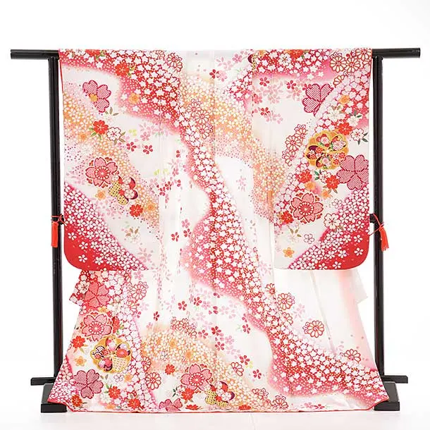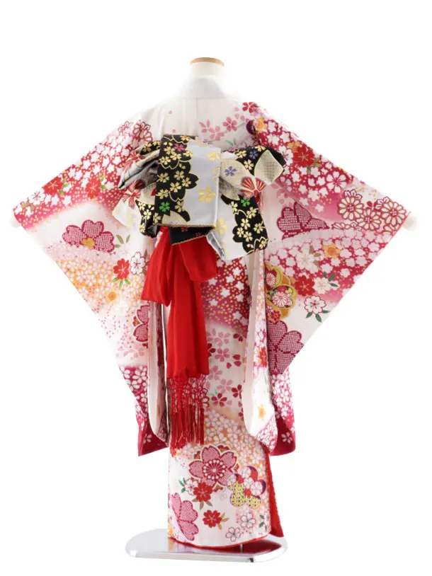七五三レンタル(7歳女児袋帯) 正絹 7739 白地 桜ながし